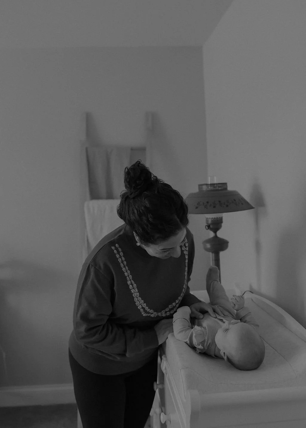 Keeping nighttime diaper changes and feedings low-stimulation: no talking, no lights, just soft touch and quiet energy